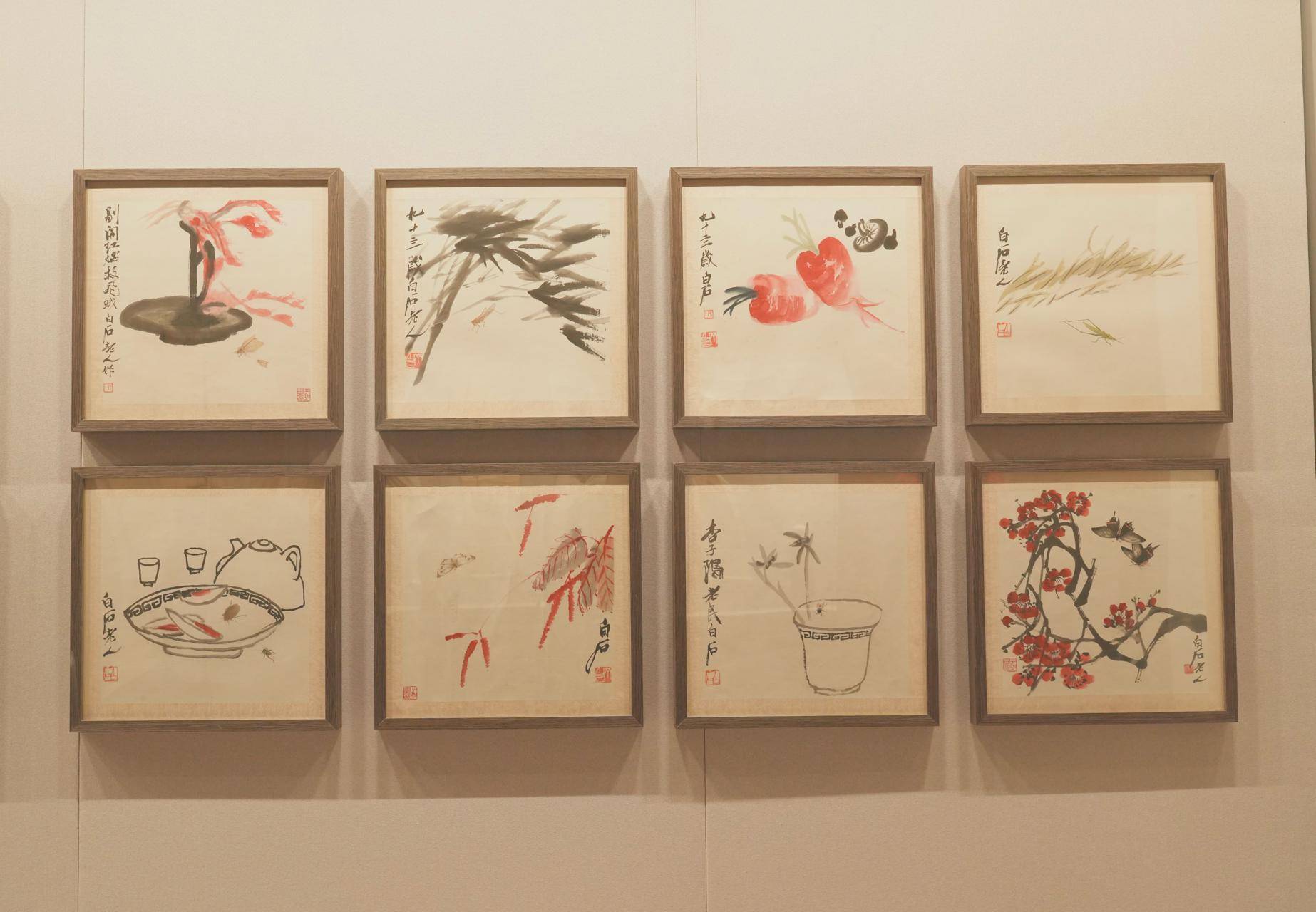 本次大展汇集三馆馆藏精品共计215件(套),涵盖绘画、篆刻、书法及珍贵手稿等门类。展览打破传统的艺术编年史陈列模式,采用四大主题篇章的策展结构,分别为“胆敢独造”“刀笔探石”“其命维新”“换了人间”,从不同维度立体呈现齐白石
